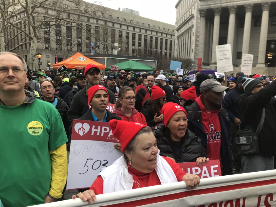 Thousands of people participated in the Working People’s Day of Action on Saturday, February 24th, just two days before the U.S. Supreme Court heard Janus v. AFSCME, a court case aimed at eroding working people’s basic freedoms. HPAE members joined rallies in NYC and Philadelphia to challenge the corporations who have rigged the economic and political systems against the rest of us.