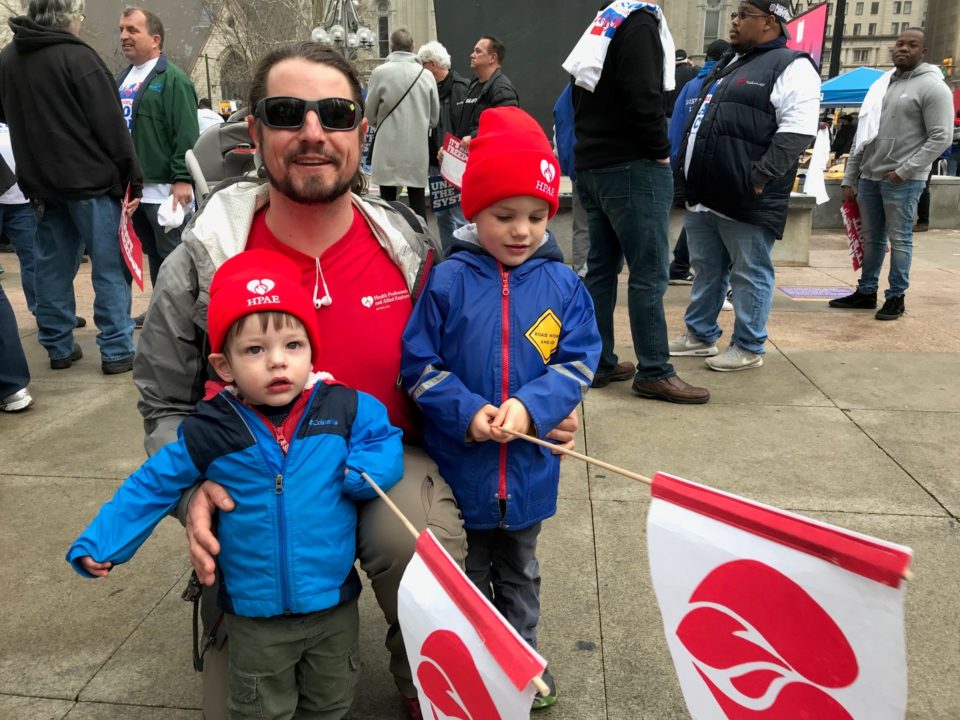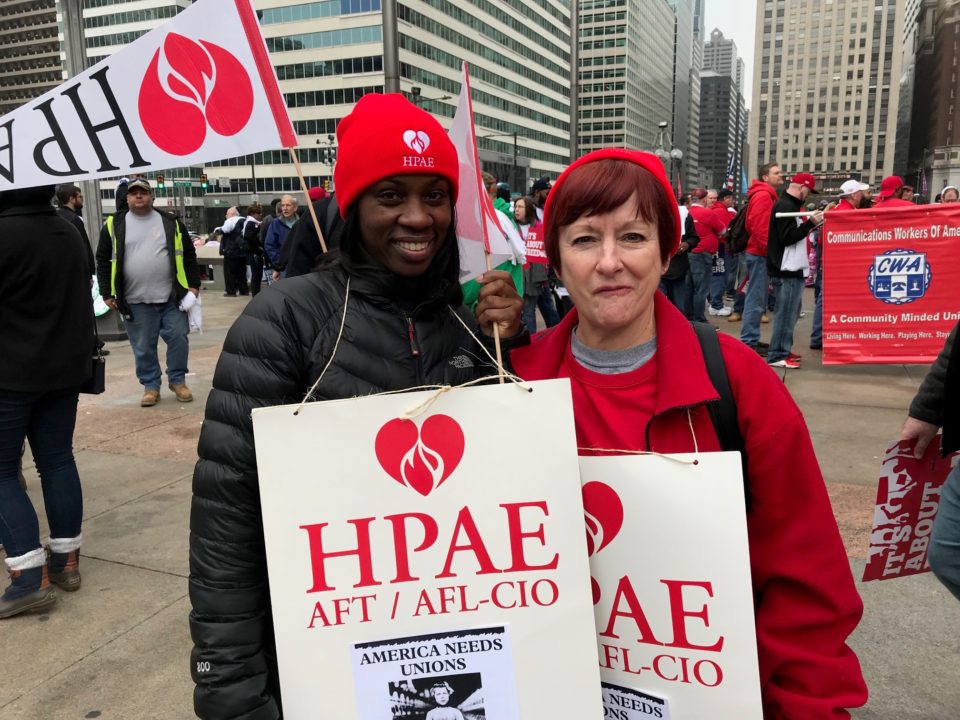 At the rally we carried signs that said: American Needs Unions. We Won’t Go Back.