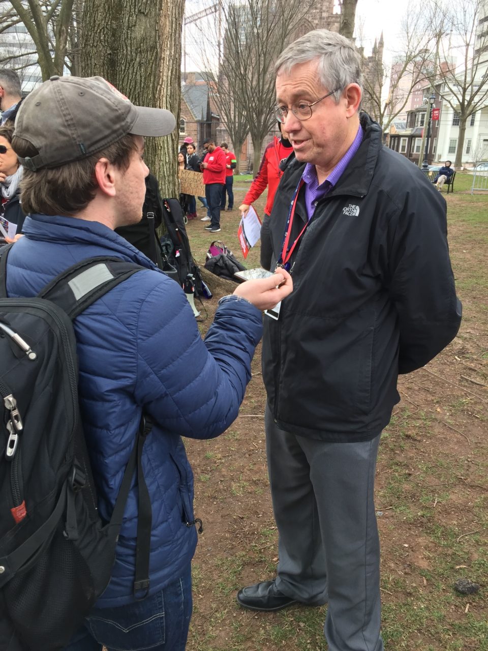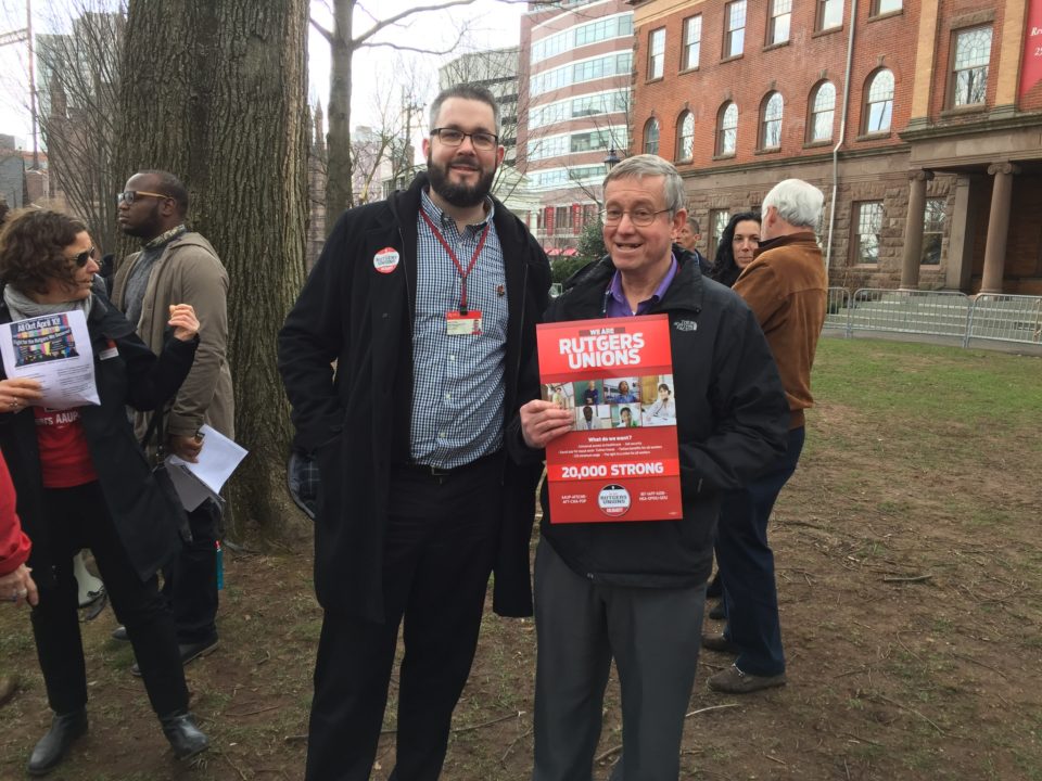 New Brunswick…Calling for fair union contracts, a freeze on tuition and a $15-per-hour minimum wage on campus, more than 400 Rutgers faculty, staff and students rallied outside the Board of Governors (BOG) meeting while dozens more inside petitioned the governing body directly. Student groups and mem-bers of 23 unions representing more than 20,000 Rutgers workers whose con-tracts expire June 30 organized the protest, according to Anthropology Professor David Hughes, Vice President of the Rutgers AAUP-AFT faculty union.
