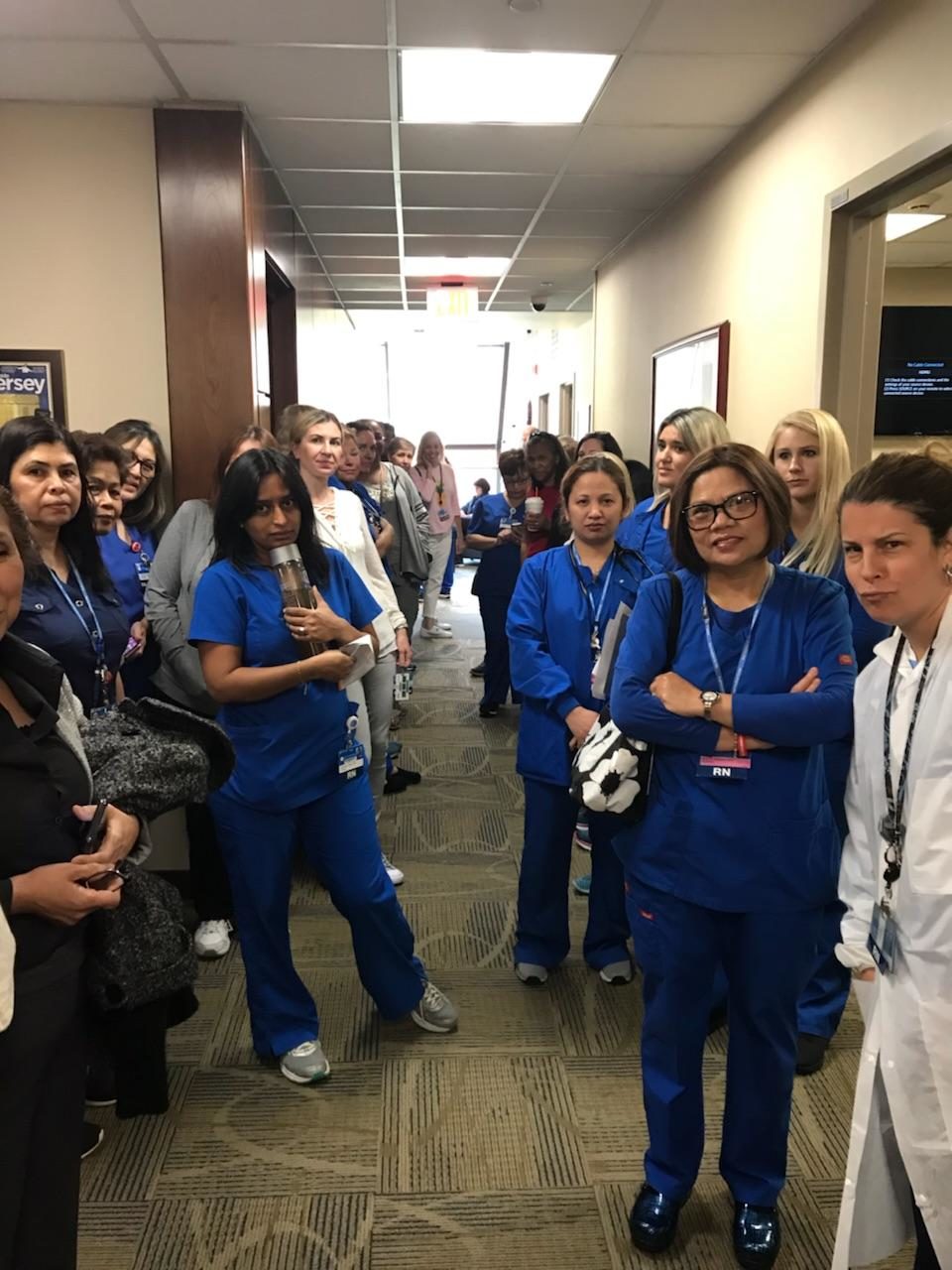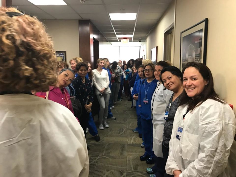 Thank you to the many nurses that joined us in our attempt to deliver petitions to Warren Geller. It was disappointing that he chose to hide and not greet the nurses that he knew were going to be there. Instead we handed the petitions to the Hospital’s negotiation committee led by Patricia Wilson, VP of HR.