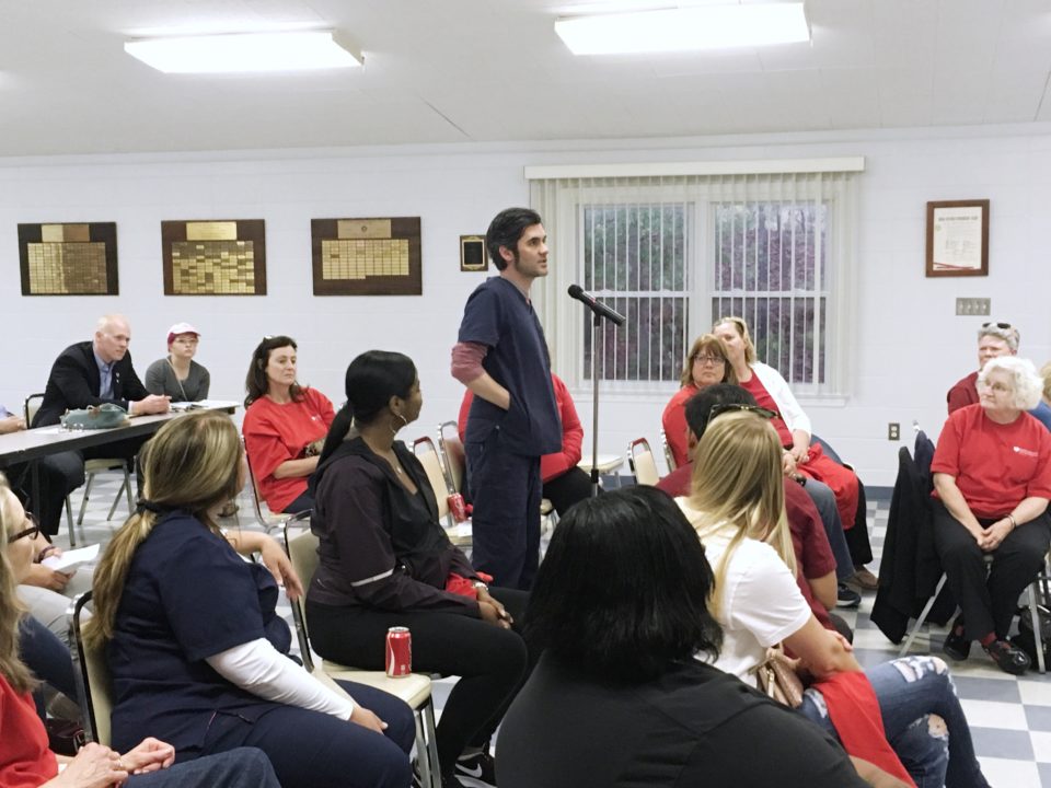 Kendra McCann, President of HPAE Local 5058 led the Town Hall and opened with: “As frontline caregivers we have been battling in the legislative arena for over 15 years striving for safe staffing levels in healthcare. As nurses we know the impact of inadequate staffing levels, the studies have been done saying patients’ and workers’ safety suffers due to short staffing. Honor our Nurses and every healthcare professional by taking action to move legislation to require every healthcare facility abide by mandated safe staffing levels.”