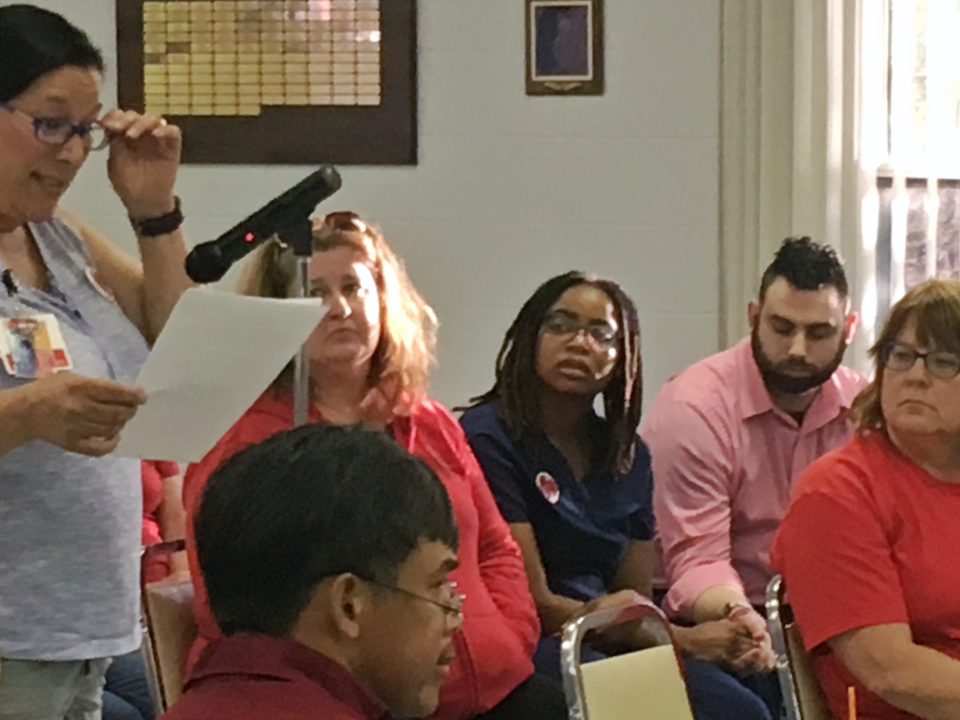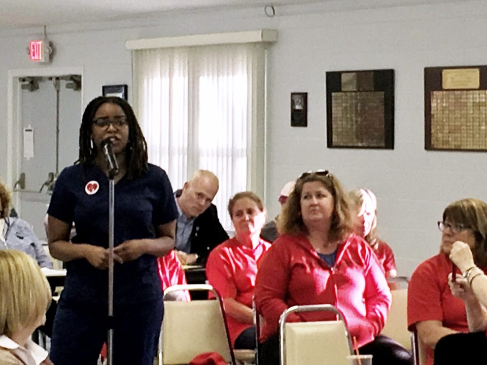 Barbara Boyler, HPAE Local 5058 at Jersey Shore University Medical Center: “I came into this career with a strong desire to help others, to care for them when under extreme health crises, but I find I am constantly playing beat the clock: there is an expectation that I will save as many lives as possible with as little help as possible and just suck it up. I am imploring you to support safe staffing legislation. No one’s health should be put at risk, whether the patient or the nurse, for the sake of profit.”