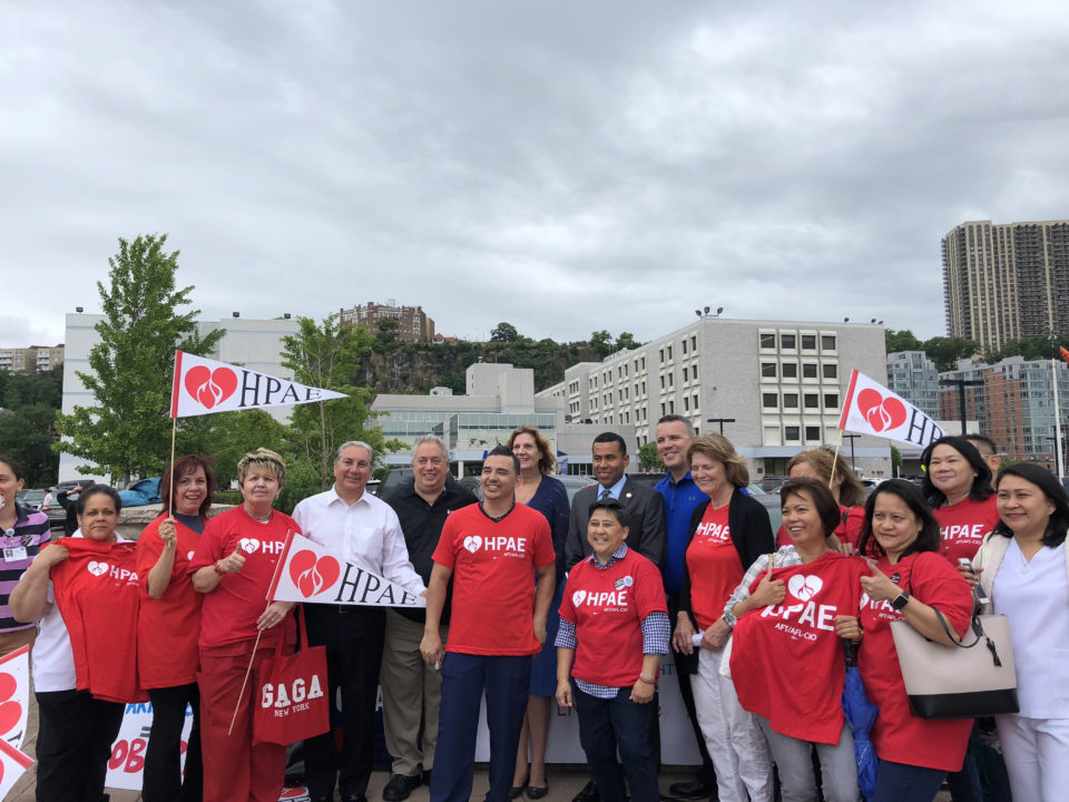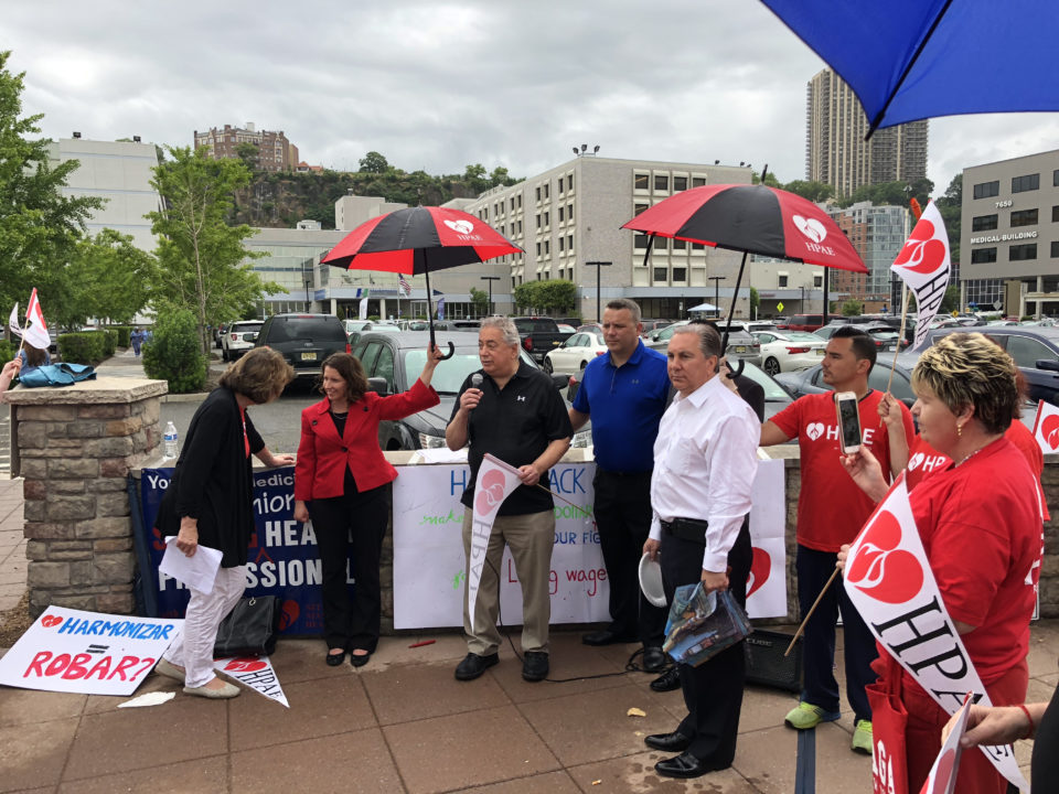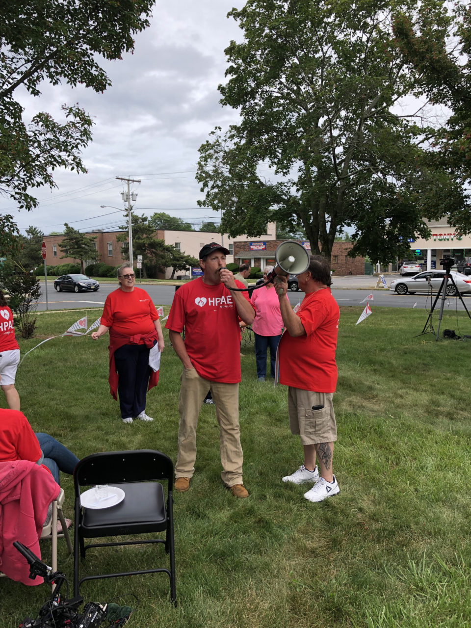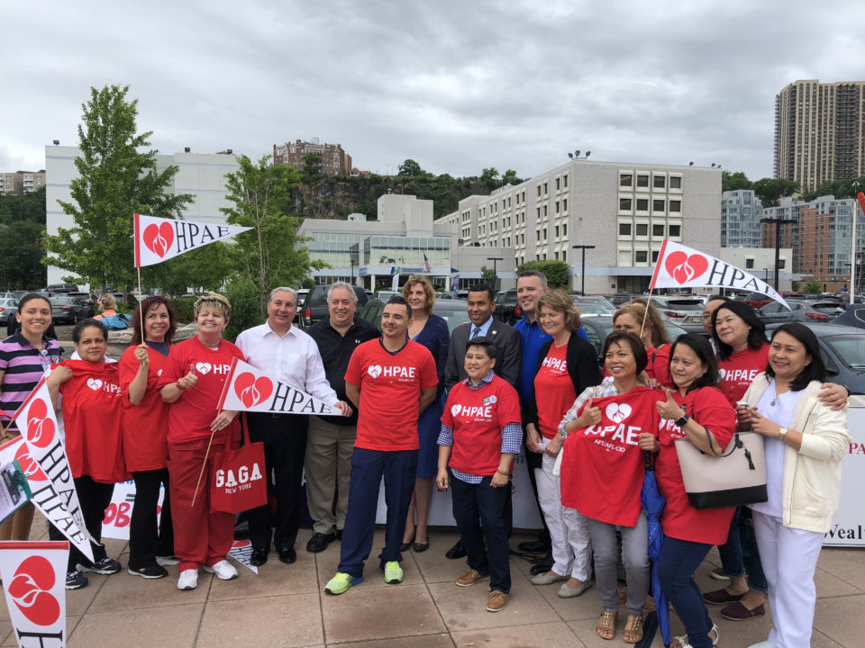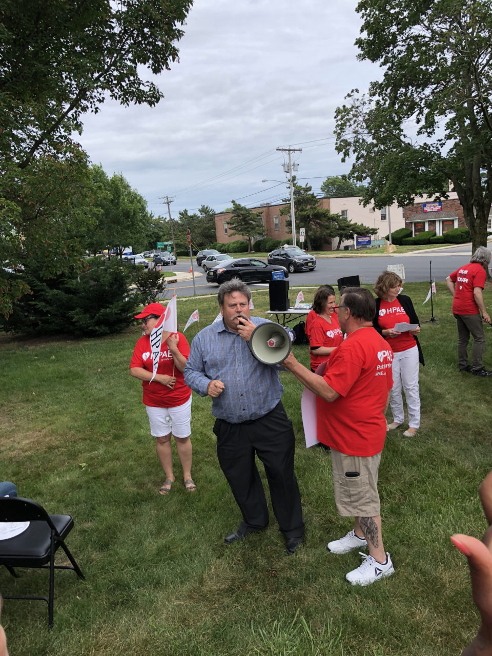 At the rallies in North Bergen and Neptune, community leaders, patients and labor unions joined HPAE in calling for stronger protections on what turned out to be a pivotal day for public sector labor unions. Earlier in the day the Supreme Court announced their decision, in a case called Janus v. AFSCME which invalidates state laws allowing labor unions to collect fees from everyone in a bargaining unit, including non-members, to pay the costs of bargaining and other representation the union is legally bound to provide for public sector workers. Even though the decision overruled a precedent that had stood for more than 40 years, that outcome had been largely anticipated by labor leaders.