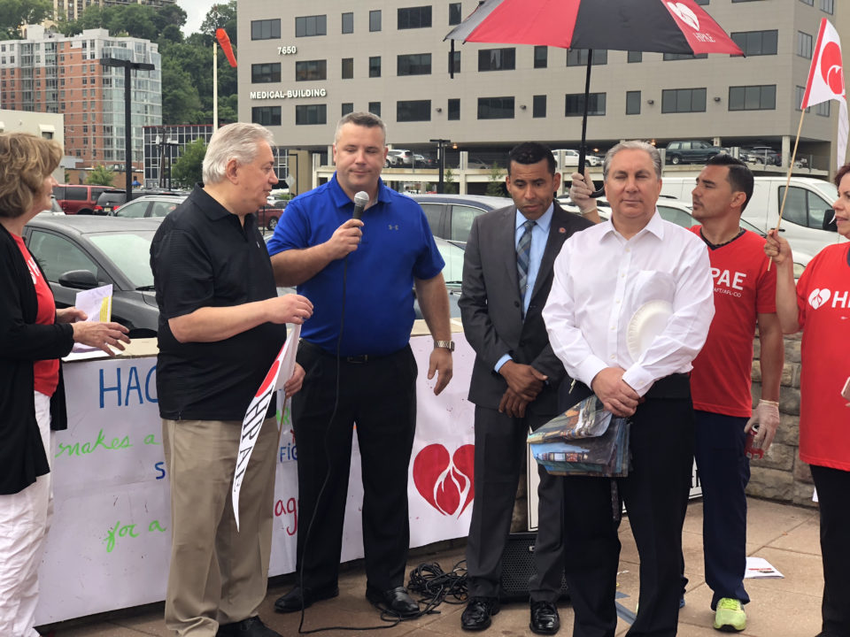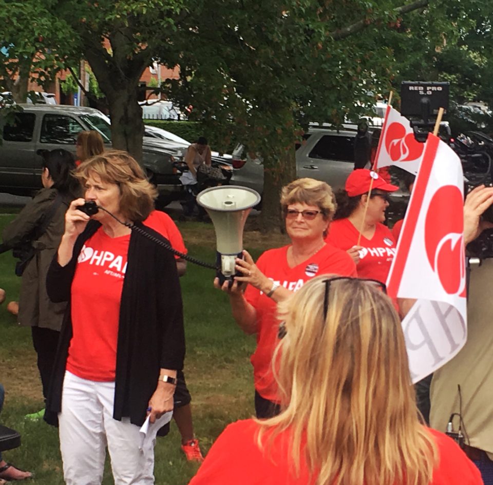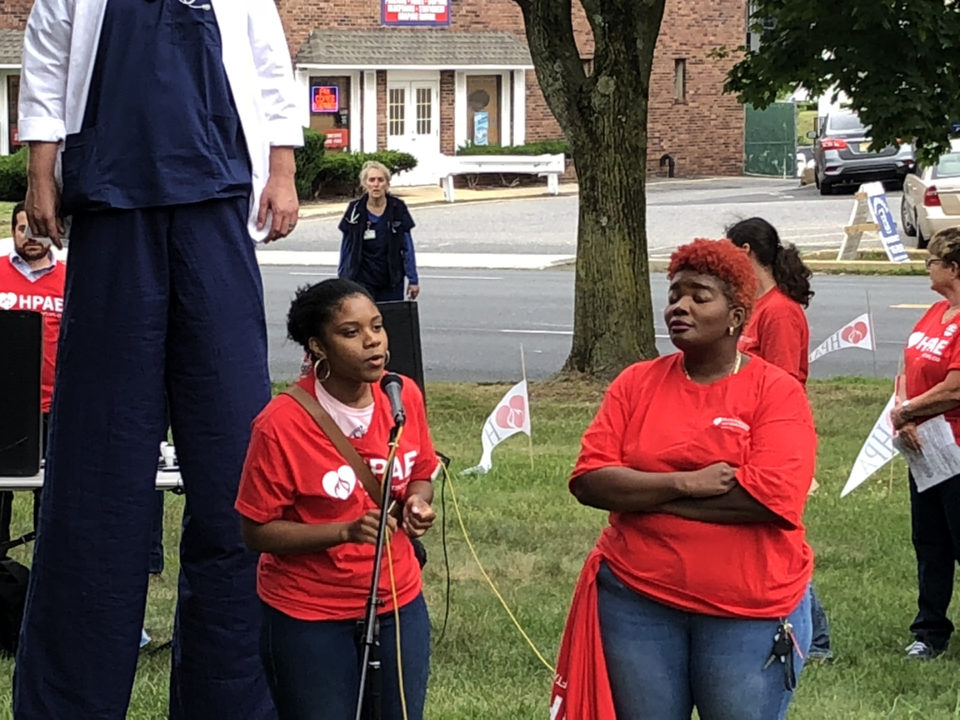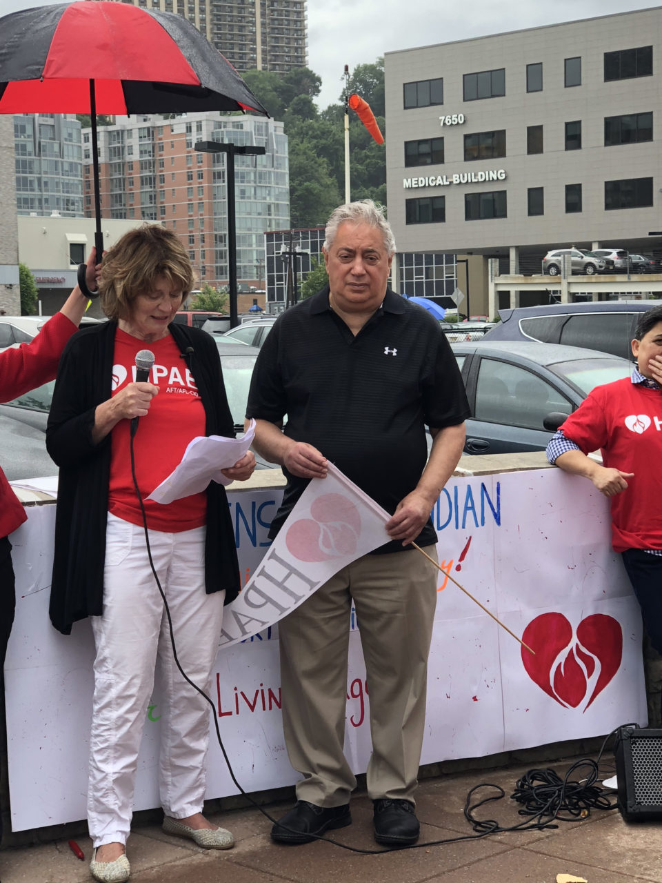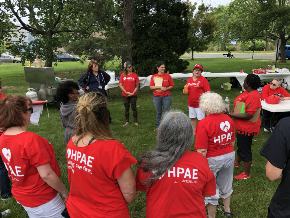 At the rallies in North Bergen and Neptune, community leaders, patients and labor unions joined HPAE in calling for stronger protections on what turned out to be a pivotal day for public sector labor unions. Earlier in the day the Supreme Court announced their decision, in a case called Janus v. AFSCME which invalidates state laws allowing labor unions to collect fees from everyone in a bargaining unit, including non-members, to pay the costs of bargaining and other representation the union is legally bound to provide for public sector workers. Even though the decision overruled a precedent that had stood for more than 40 years, that outcome had been largely anticipated by labor leaders.
