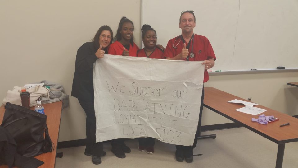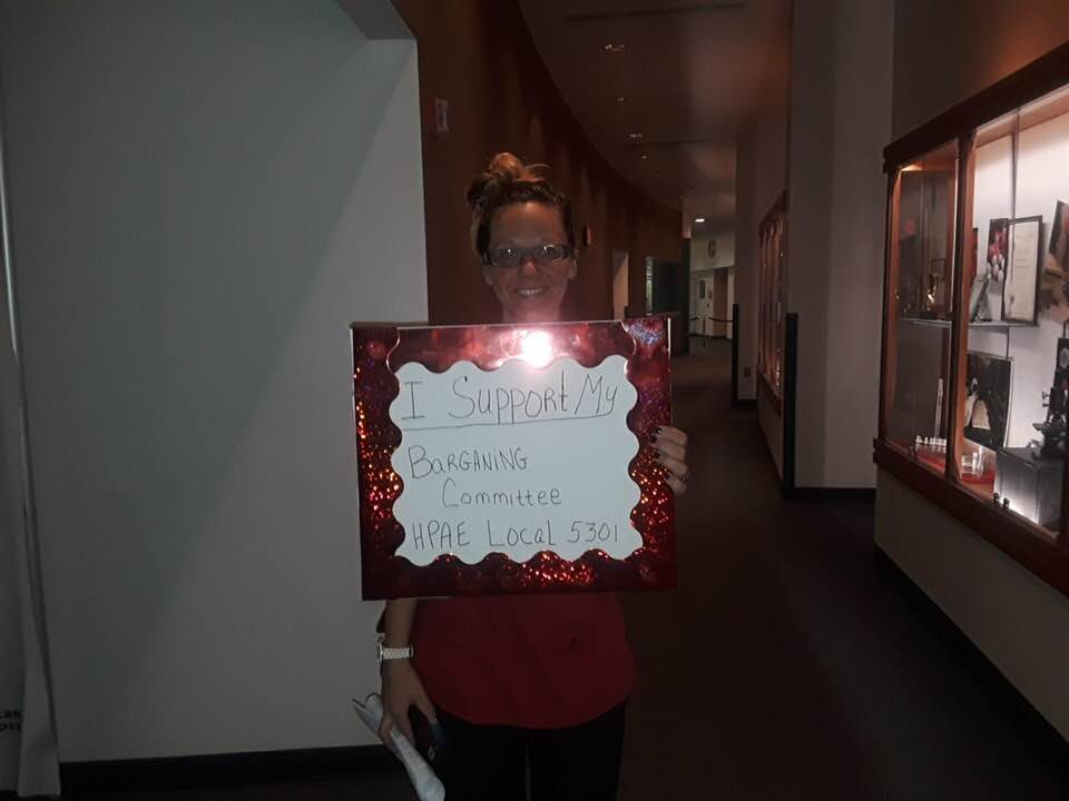 Between now and then, it’s critical that we show management our power. You all are doing a great job posting pictures on Facebook holding signs that say “We Support our Bargaining Committee.” We need to get all the pictures posted by Thursday at 5:00pm, and we need every member to post one so we can send a clear and unified message to management. We’re going to be printing them on a big poster board and presenting it to management on October 1st.