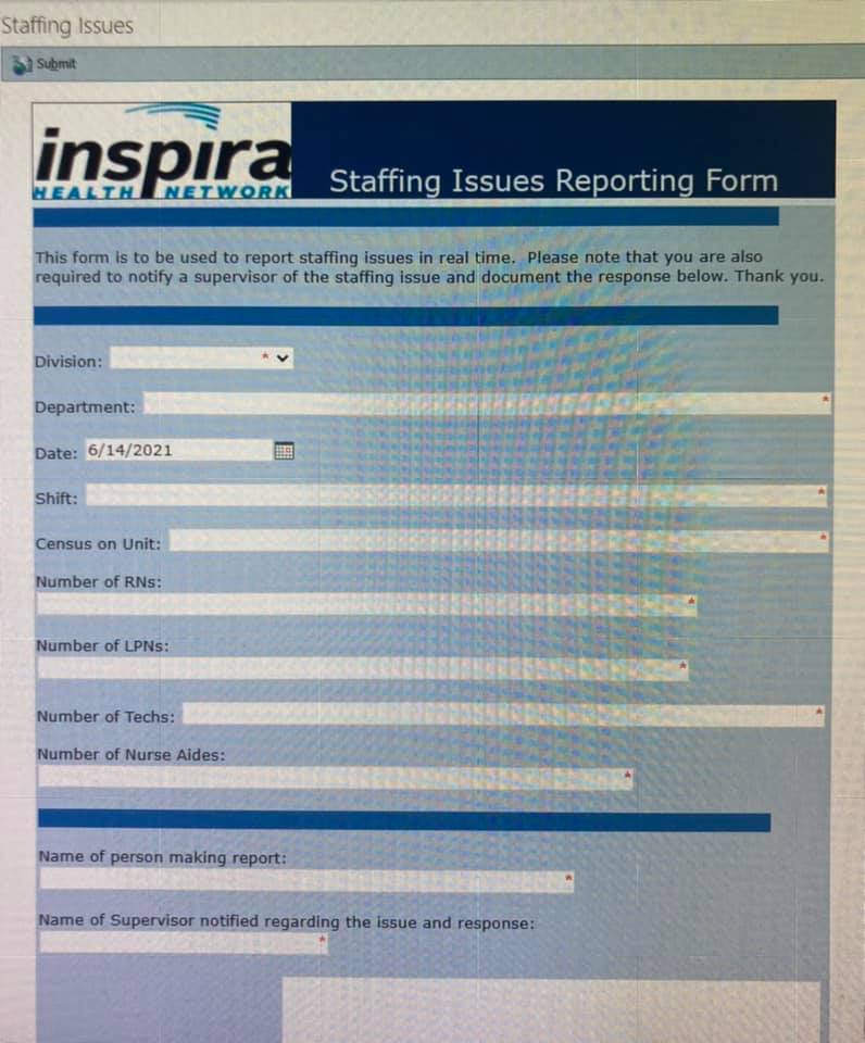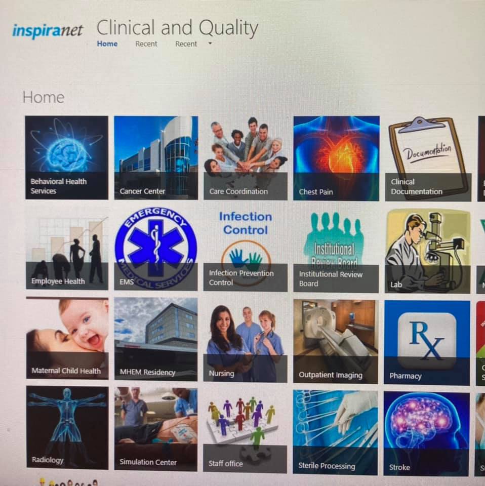 Hello everyone. We wanted to give you a little guidance on filling out short staffing forms, since they can be hard to find, and people are not always sure when to use them. To find the form, go to the Inspira intranet and click on the box labeled “Clinical and Quality”. Next click on “Nursing”, and at the top left of that next page you will click a blue link titled “Staffing Form.”