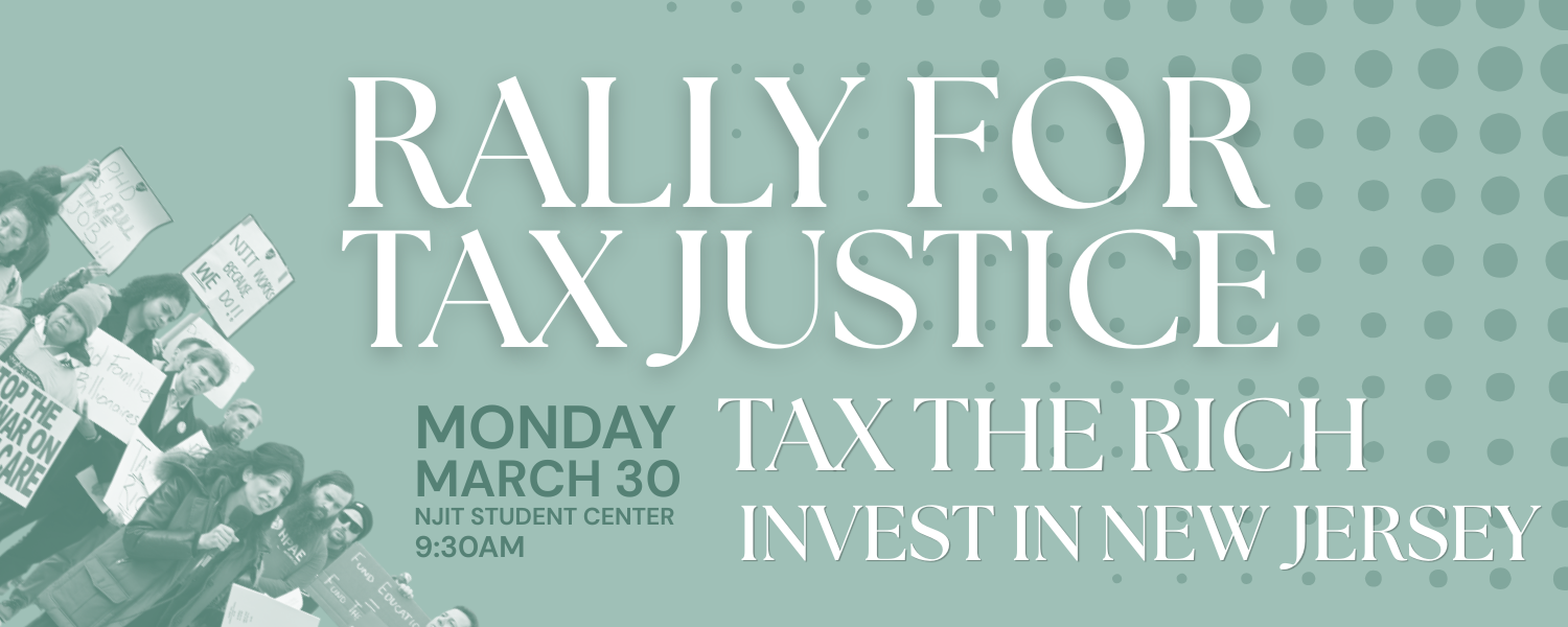 Join us outside the Senate budget public hearing at NJIT on Monday, March 30 at 9:30 AM on the NJIT Campus Green in Newark, located behind the Student Center at 150 Bleecker St.